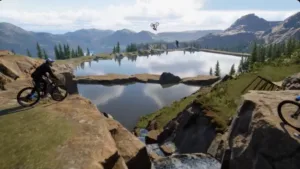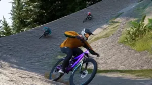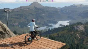 MAVRIX throws you straight into a mountain biking world that feels like it was built by people who actually ride. It’s huge — a proper open playground that stretches across 100 square kilometers of trails, slopestyle runs, and bike parks. One minute you’re bombing a downhill track, the next you’re lining up for a ridiculous jump just to see if you can stick it.